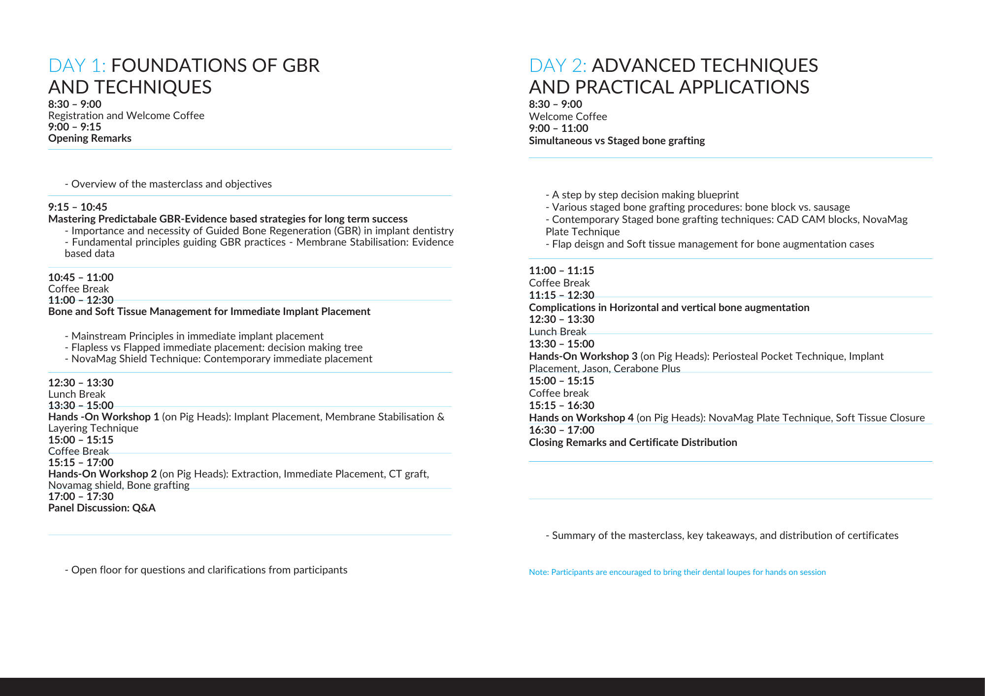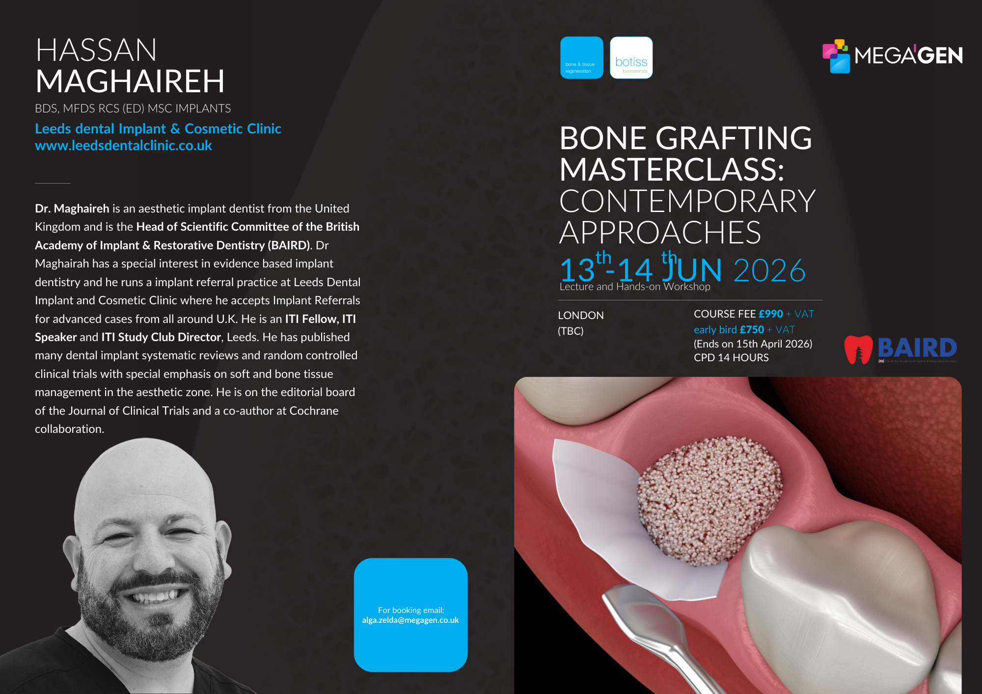 Cadaver specimens will be provided by the course for hands-on clinical training under direct supervision, allowing for bone grafting excursuses for each participant during the course in Coventry.